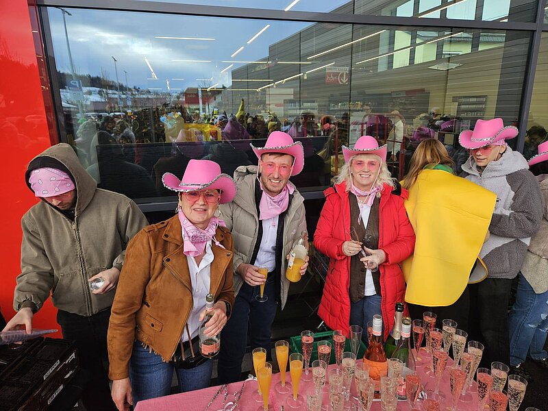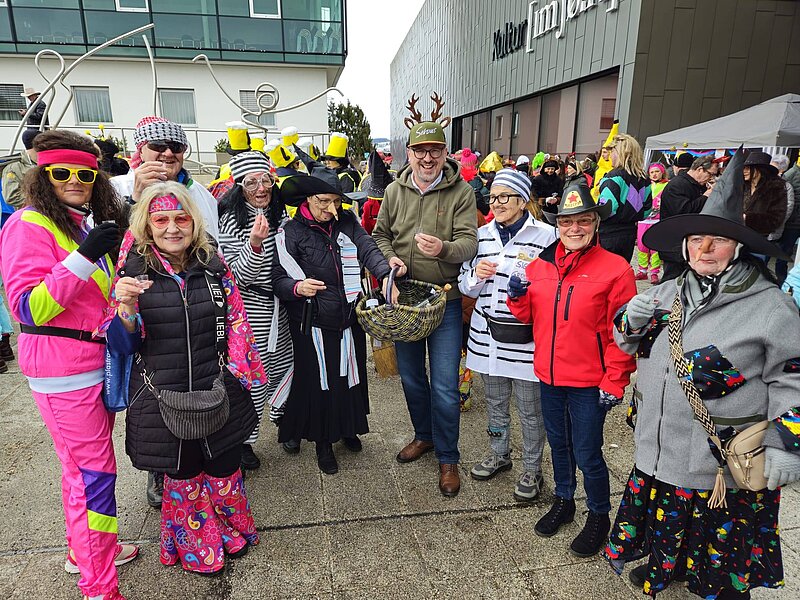 Trotz dem nicht optimalem Wetter sind so grandios viele Faschingsfreunde zum Ortsplatz in Schweinbach gekommen. Gemeinsam ging’s vom Gemeindeamt zum Spar, weiter zum Skaterplatz – von Labstation zu Labstation und mit bester Stimmung.