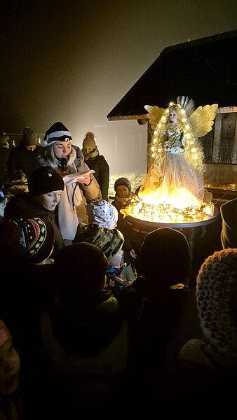 So viele Familien und Kinder haben sich gemeinsam auf die Suche gemacht. Mit einer liebevollen Geschichte, geheimnisvollen Spuren und dem Christkind, das am Ende in den Himmel davonblitzte, waren die Kinder dem Christkind ganz nah.